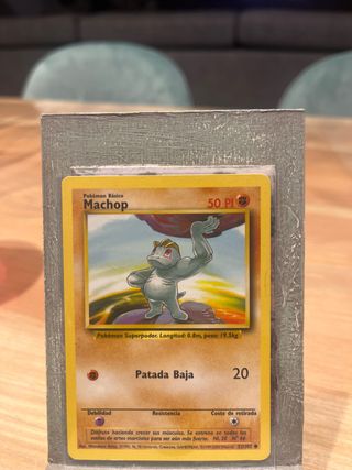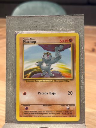 Carta Pokémon de Machop, edición básica. - Número de carta: 52/102 - Ataque: Patada Baja - Coste de retirada: 20 - Ilustrador: Mitsuhiro Arita - Año: 1999