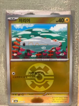 Carta Pokémon de 저리어 con 40 HP. - Ilustración de Jerky. - Número de carta 047/193. - Habilidad: 가만히있기 (Recupera 10 HP). - Texto adicional: 한 마리의 전력은 적지만 많은 저리어가 연결되면 번개와 같은 위력이 된다.