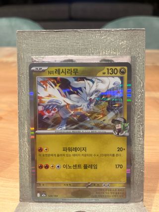 Carta Pokémon de N de Reshiram con 130 HP. - Ataque Power Rage (Power Rage). - Ataque Innocent Flame (Innocent Flame). - Número de carta: 128/193.