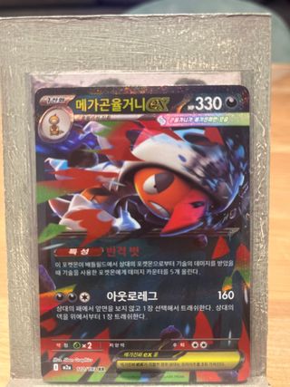 Carta Pokémon de Megakari EX. - Poder: Buzz Boost - Ataque: Jet Cyclone - Puntos de Salud: 280 - Debilidad: x2 - Resistencia: -30