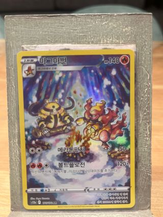 Carta Pokémon de Magmortar con 140 puntos de salud. - Ilustración de Saya Tsuruta. - Código: S12a F 175/172 AR. - Idioma: Coreano.