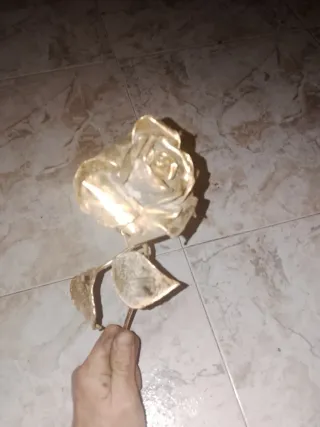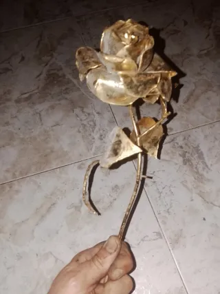 Figura decorativa de una rosa elaborada en latón. Un detalle elegante para cualquier espacio. 1kg - Material: Latón. - Diseño: Rosa con tallo y hojas.