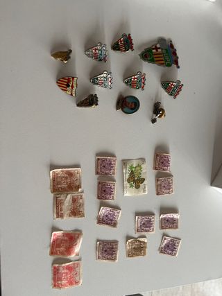 Lote de pins y sellos antiguos