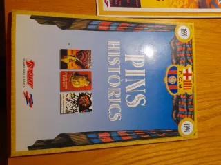 Colección de pins históricos del F.C. Barcelona 1899-1994 Antigüedad estimada aproximadamente 29 años Material papel y metal Importancia histórica Representa una colección de pines y plantillas relacionados con la historia del Futbol Club Barcelona, un club deportivo con una gran historia y relevancia cultural en España y a nivel internacional. Datos divertidos [El F.C. Barcelona es conocido por su lema "Más que un club", reflejando su importancia cultural y social., La colección probablemente incluye pines conmemorativos de momentos importantes en la historia del club, jugadore de la época