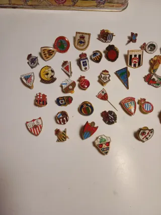 Conjunto de pins de equipos de fútbol español. - Incluye varios escudos de equipos. - Diseños variados con colores y emblemas característicos. - Precio por todos.