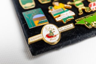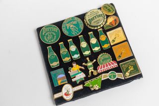 Lote de 21 pins originales de la marca Perrier, todos de época, procedentes de campañas publicitarias y patrocinios deportivos realizados entre los años 80 y 90. Se trata de piezas coleccionables esmaltadas sobre metal, en muy buen estado de conservación, muchas de ellas con diseños vinculados al deporte (fútbol, ciclismo, tenis, atletismo, ping pong…), así como varias versiones clásicas de la icónica botella Perrier. Es un conjunto muy representativo de la estrategia de marketing deportivo de Perrier durante su etapa más activa en eventos internacionales. No se venden por separado.