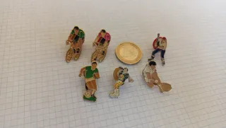 El lote incluye 6 pins antiguos de la liga española: Julen Guerrero, Athletic Club de Bilbao(2 diferentes), FC Barcelona, Real Sociedad y Real Valladolid Se pueden vender por separado, 2,5€ cada pin.