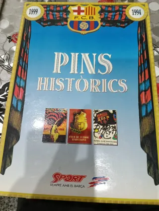Colección de pins históricos del Fútbol Club Barcelona. - Incluye pins conmemorativos de 1899 y 1994. - Diseño inspirado en el escudo del club y eventos históricos. - Publicado por Sport, Sempre amb el Barça.