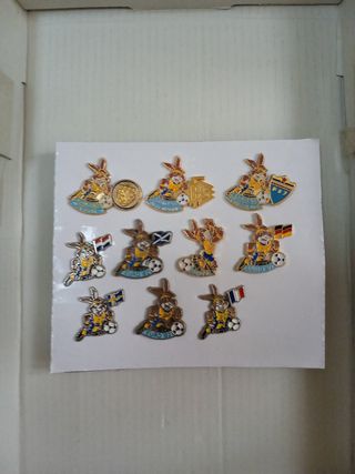 PINS ORIGINALES DE LA MASCOTA OFICIAL DEL MUNDIAL DE FÚTBOL ITALIA 1.990. PRECIO POR UNIDAD: 13 € PIN FUTBOLISTA MUNDIAL ITALIA 1990: 5 € PRECIO POR EL LOTE COMPLETO : 25 € A recoger en Valencia capital o envío a cargo del comprador : pago por Bizum en envío. ENVÍO POR CORREO ORDINARIO POR 1,50 euros más o por WALLAPOP. R-6