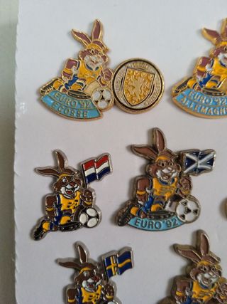 Lote de 10 pins Eurocopa Suecia 92, a recoger en Valencia capital o envio por correo ordinario 2 euros más pago por Bizum o por la aplicación. Casa