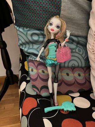 Muñeca de la popular serie Monster High, personaje Lagoona Blue. - Pelo rubio largo. - Maquillaje detallado con pecas. - Incluye bolso rosa. - Vestido con detalles azules y dorados. - Medias de rejilla negras. -Peine azul - Le falta un zapato