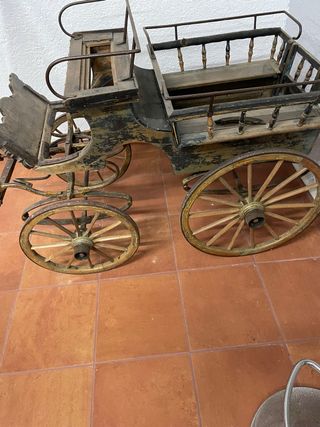 Carro antiguo de finales del siglo XVIII. Una pieza de colección con gran valor histórico. - Estructura de madera. - Ruedas de madera con detalles metálicos. - Diseño de época.