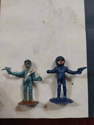 Set de dos figuras de astronautas de plástico. Cada figura mide aproximadamente 7.5 cm. - Figuras de astronautas. - Material: Plástico. - Altura: 7.5 cm.