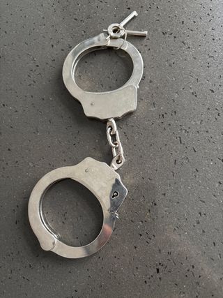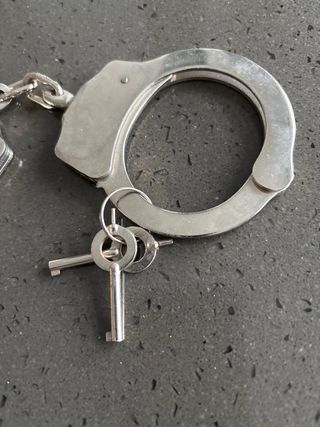 Par de esposas metálicas plateadas, ideales para coleccionismo o atrezo. - Fabricadas en metal resistente. - Incluyen dos llaves para su apertura y cierre. - Diseño clásico de esposas.