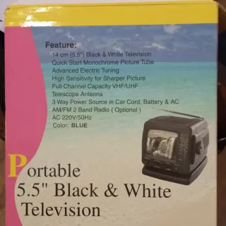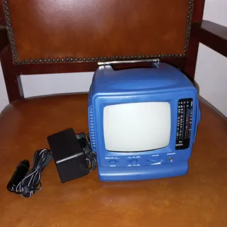 Televisor portátil TUV en blanco y negro. Funciona. Es de los antiguos VHF y UHF. También tiene radio. Ideal para colección. - Antena extensible. - Botones de control de volumen y sintonización.