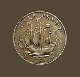 Moneda de Reino Unido 🇬🇧 1/2 penique de 1953 Estado: MBC Rareza: común País: Reino Unido 🇬🇧 Periodo: Reina Isabel II (1953-1967) Moneda: libra esterlina (pre-decimal) Año: 1953 Aleación: Bronce Tirada: 8,9 millones #283