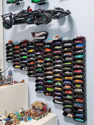 Exhibidor hexagonal para colgar en la pared, perfecto para colecciones de coches Hot Wheels. - Diseño modular. - Color negro. - Precio dependiendo de la cantidad
