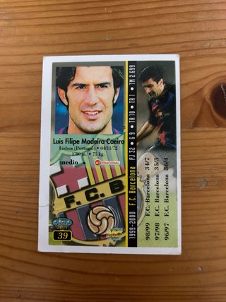 Cromo de Luis Figo del FC Barcelona de la temporada 2000-2001. Mundicromo. Estado aceptable