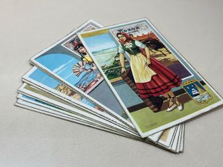 Conjunto de 12 antiguas postales. Se corresponden a la Serie de trajes regionales/carteles de Toros. Son sin circular y en muy buenas condiciones. (Años 50) - Colección de postales vintage. - Ideal para coleccionistas.