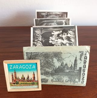 Álbum de 10 fotografías en blanco y negro, antiguas (años 50) de la Basílica del Pilar + Imán de la Basílica.