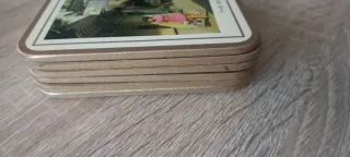 Conjunto de 6 posavasos vintage de la ciudad de York, de la época de los años 60-70. Sólo uno de ellos tiene una pequeña mancha por el uso. Bordes en dorado. Ideal coleccionismo - Diseño The Shambles, York. - Otro diseño con Boothham. - Ilustraciones de calles y edificios históricos.
