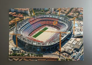 Postal del icónico Estadio Spotify Camp Nou. - Representación del estadio. - Ideal para coleccionistas y aficionados. FTS POSTCARDS FC Barcelona Stadium Estadi del Barça en construcció. Más postales de estadios en mi perfil