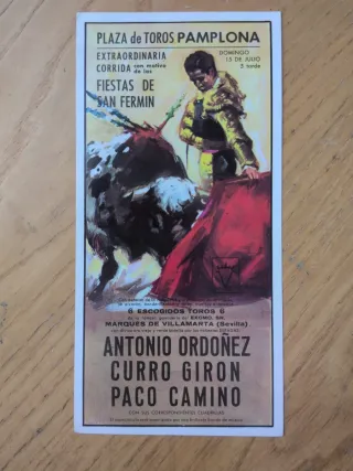 Plaza de toros de Pamplona - Fiestas de San Fermín - Antonio Ordóñez - Curro Giron - Paco Camino Plaza de toros Monumental de Barcelona - Antonio Bienvenida - Antonio Ordóñez - Diego Puerta