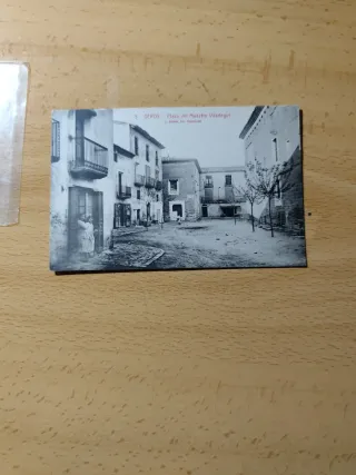 Postal antigua de Seròs (Lleida) que muestra la Plaça del Maestro Viladegut. - Fotografía de L. Roteta, Barcelona.