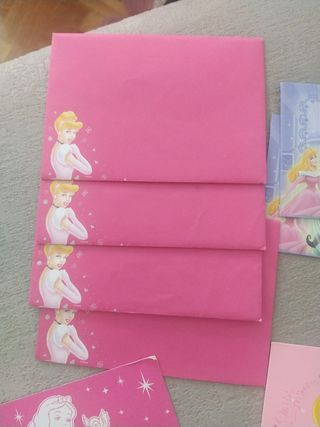 Juego de postales y sobres de princesas Disney y postales y cromos de Frozen