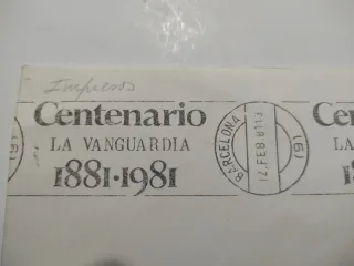 Sobre matasellos Centenario La Vanguardia 1981