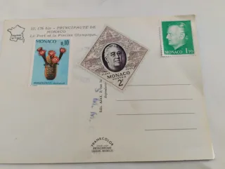 Postal antigua de Mónaco con la imagen Le Port et la Piscine Olympique.Entrega en mano. - Sello de Mónaco con un cactus. - Sello de Mónaco con retrato. - Impresa en Francia.