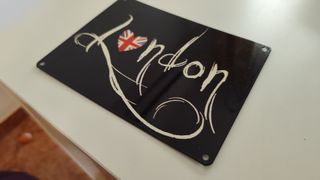 Chapa comprada en Londres. Negra con las letras en blanco. Tamaño 15x20.