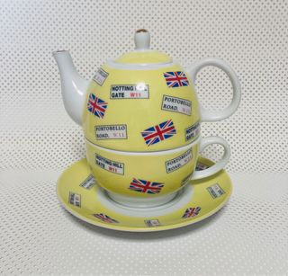 Precioso juego de té compuesto por tetera, taza y plato. venta por cambio de domicilio. se entrega en Zaragoza, zona Actur, centro comercial granCasa o se envía mediante wallapop. seriedad demostrable demostrable en venta online