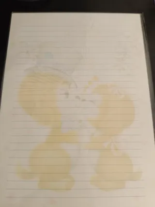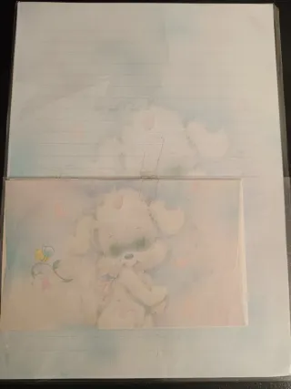 Consta de portada con contraportada, es decir, tiene la parte de atrás del cartón, como si fuera el block. Y su carta de hoja+ sobre a juego. Número LP-7816 Solo portada 3€ Solo set 1€ Junto 3.50€ No hago envíos por la oficina postal de Correos. No puedo ir. Pero sí hago por el resto de mensajerías de la App. Cartas Perfumadas cartas de olor cartas de cambiar Hojitas olorosas papelería vintage años 80 90 retro egb infancia