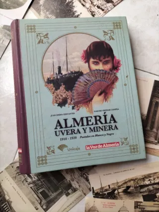 Álbum de postales antiguas de Almería, cubriendo la época de la Belle Époque entre 1912 y 1920. Incluye postales de la ciudad y sus pueblos. Solo el álbum, no contiene postales. - Título: Almería en la Belle Époque 1912-1920 - Subtítulo: Postales de Almería y sus pueblos - Colaboran: Unicaja, Endesa, La Voz de Almería