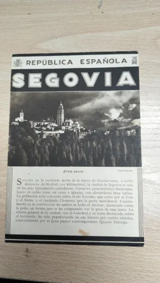 Postal antigua de Segovia, España, del Patronato Nacional de Turismo. - Fotografía en blanco y negro de la ciudad. - Texto descriptivo en español. - Vista parcial de Segovia. Las fotografías son parte de la descripción del producto