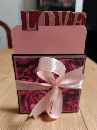 Postal artesanal pop-up hecha a mano con mucho cariño 💖 Postal única con el mensaje “With love”, en delicados tonos rosados y decorada con strass que le dan un toque brillante y elegante. Al abrirla, aparecen corazones superpuestos en relieve con efecto pop-up que crean una escena muy romántica. En la parte trasera dispone de espacio para escribir una dedicatoria personal. Incluye sobre a juego. Ideal para San Valentín o para cualquier otra ocasión especial: aniversarios, cumpleaños, agradecimientos o simplemente para decir “te quiero” de una forma bonita y original. #postalartesanal #popup #hechoamano #sanvalentin #withlove #regal