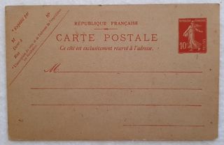 Magnífica tarjeta entero postal de la República francesa, de 10 céntimos, sin circular. Medidas de 137 x 89 milímetros. Especial coleccionistas. Unifico envíos. Escucho ofertas.