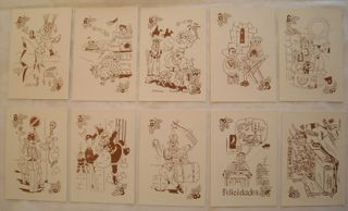 Desde finales de los años 70 hasta el 2010. Temáticas: Paisajes, bodegones, religiosos, fútbol, humor, comercios y negocios locales, horóscopo, animales, folclore.. Vendo lote completo..