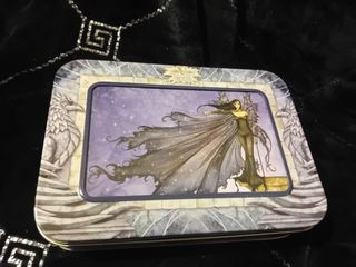 Caja metálica portafotos En la tapadera puedes poner una foto o ir cambiando las postales de las hadas. incluye postales de hadas y sobres estampados.