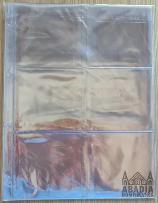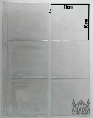 Paquete de 10 hojas transparentes para organizar postales y sobres de primer día. - Cada hoja tiene 4 compartimentos. - Dimensiones aproximadas por compartimento: 11cm x 15cm. - Material: Plástico transparente.