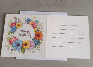 Vendo tarjeta de felicitación de cumpleaños, con diseño de globos, hecho a mano, de pintura de diamantes, muy original. Incluye sobre blanco.