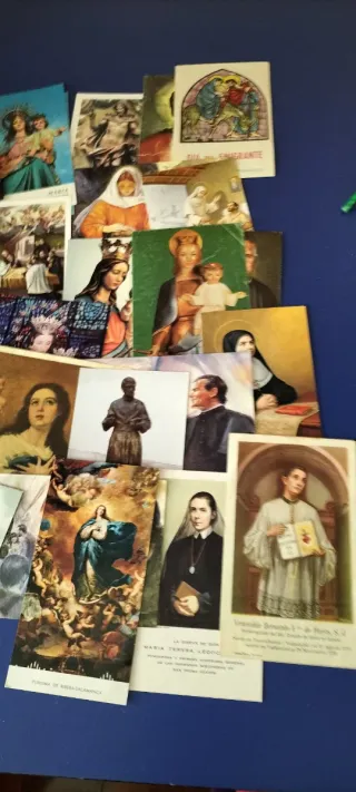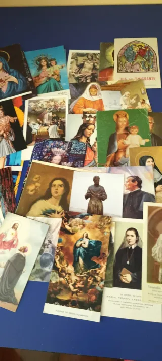 Conjunto de más de 20 estampas religiosas antiguas, con ilustraciones a color y variedad de tamaños y estilos. Bien conservadas
