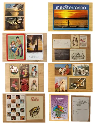 Conjunto de 56 postales vintage de los años 70. - Ilustraciones de estilo retro. - Temática variada con figuras y escenarios. (algunas están repetidas). Muy buen estado - Ideal para coleccionistas. (puedo enviar más fotosop información adicional)