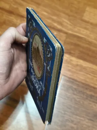 Libro de postales antiguas de Roma, titulado Ricordo di Roma. - Cubierta azul con detalles dorados. - Incluye una imagen central de la cúpula de San Pedro. - Contiene 32 Vedute (32 vistas). - Sello SPQR con la loba capitolina.