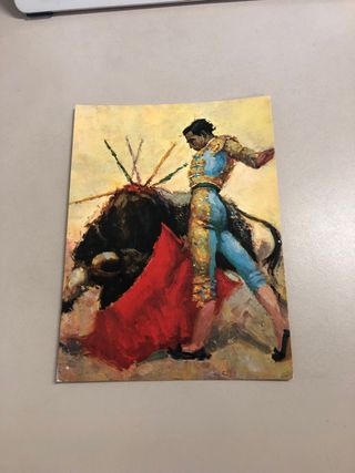 Conjunto de postales antiguas con escenas de tauromaquia. Cada postal muestra una ilustración detallada de toreros en acción y se vende a 5 euros - Ilustraciones de toreros. - Temática taurina. - Estilo clásico.