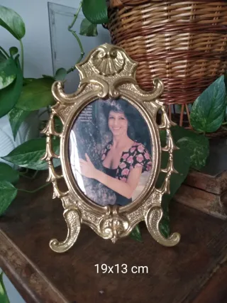 Elegante marco de bronce con un diseño ovalado y detalles ornamentales. - Material: Bronce - Forma: Ovalada - Medidas: 19x13 cm
