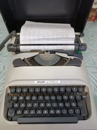 Máquina de escribir Olivetti Lettera 10, un clásico del diseño. - Diseño retro y funcional. - Teclado QWERTY completo. - Carcasa protectora incluida.