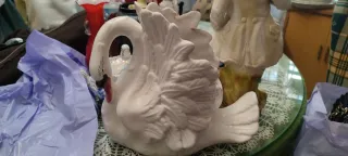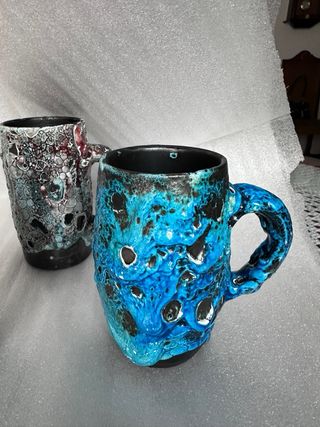 Conjunto de dos jarras de cerámica con un diseño único y llamativo. - Fabricadas en cerámica. - Estilo francés. - Acabado esmaltado con detalles en relieve. - La jarra mas alta mide 20 cm. La mas baja mide 14 cm de alta y de boca 16 cm. Se envia por Wallapop