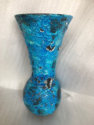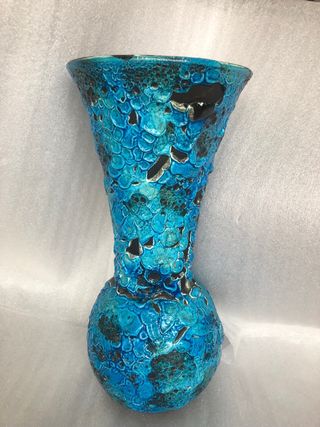 Precioso jarrón de cerámica de estilo francés antiguo. Su diseño texturizado y su vibrante color azul lo convierten en una pieza decorativa única. - Acabado texturizado. - Color azul intenso con detalles negros. -Mide de alto 30 cm y de ancho 15 cm. Se envia por Wallapop